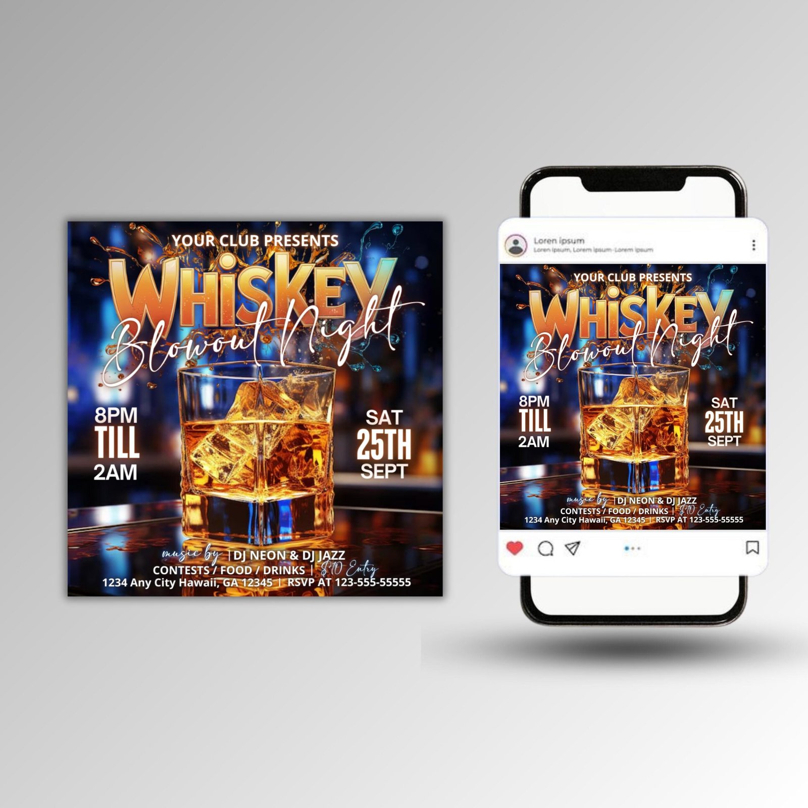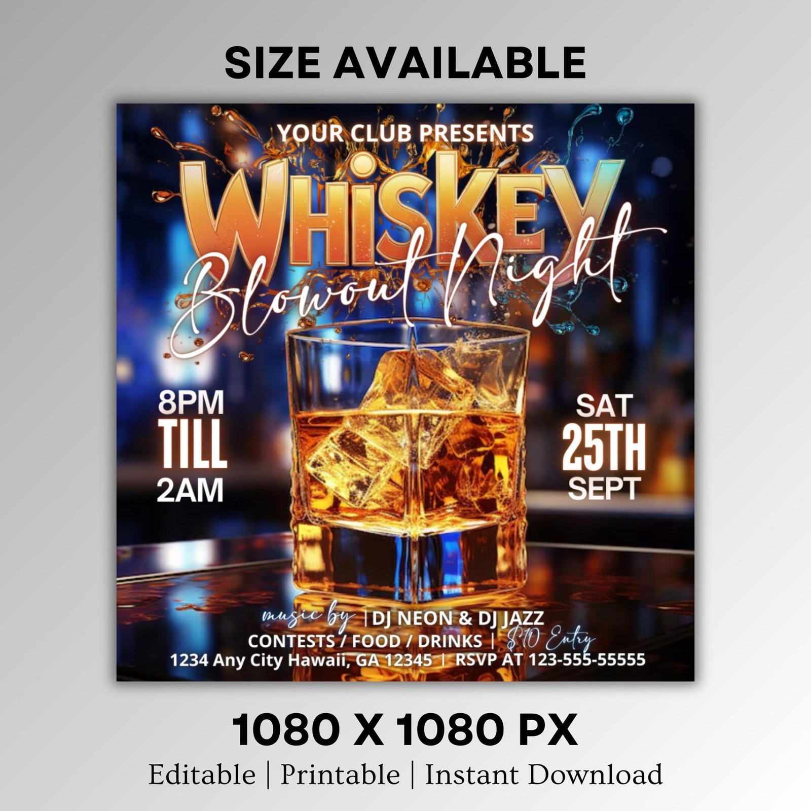 Whiskey Party Flyer, Night Club Flyer, DJ Party Invitation, Drink Party Flyer, Saturday party, Canva Editable Template, Instant Download