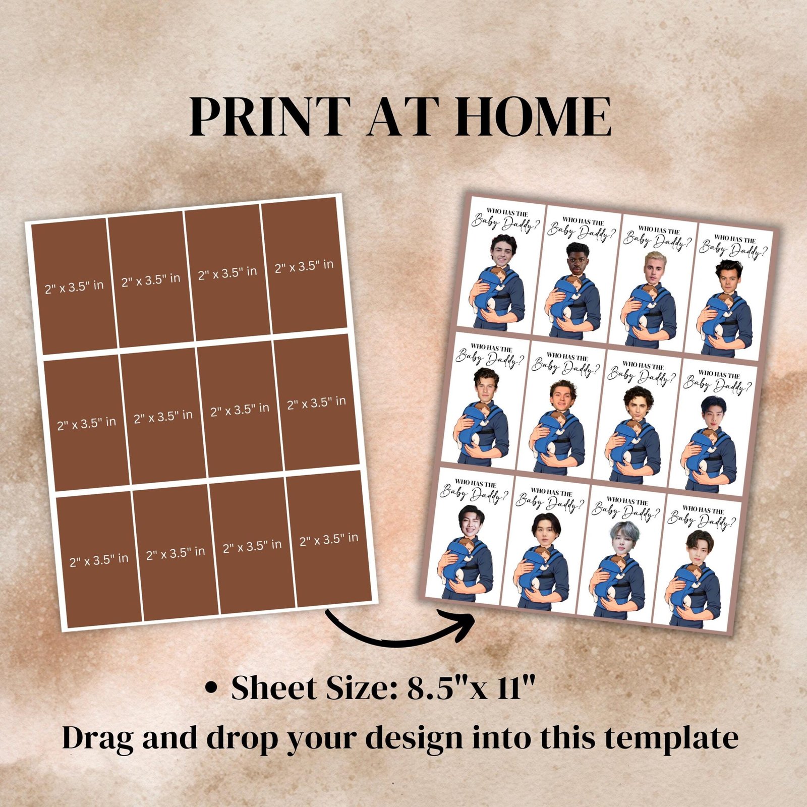 Who Has The Baby Daddy, Printable Baby Shower Game, Find Daddy Scratch Game, Editable Celebrity Scratch Off Cards, Canva Template
