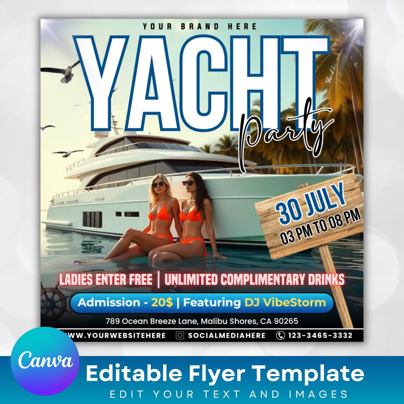 Yacht Party Flyer, Summer Party Flyer, Summer Beach Party Flyer, Dj Party Invitation, Summer Break Flyer, Summer Event Flyer, Canva Editable